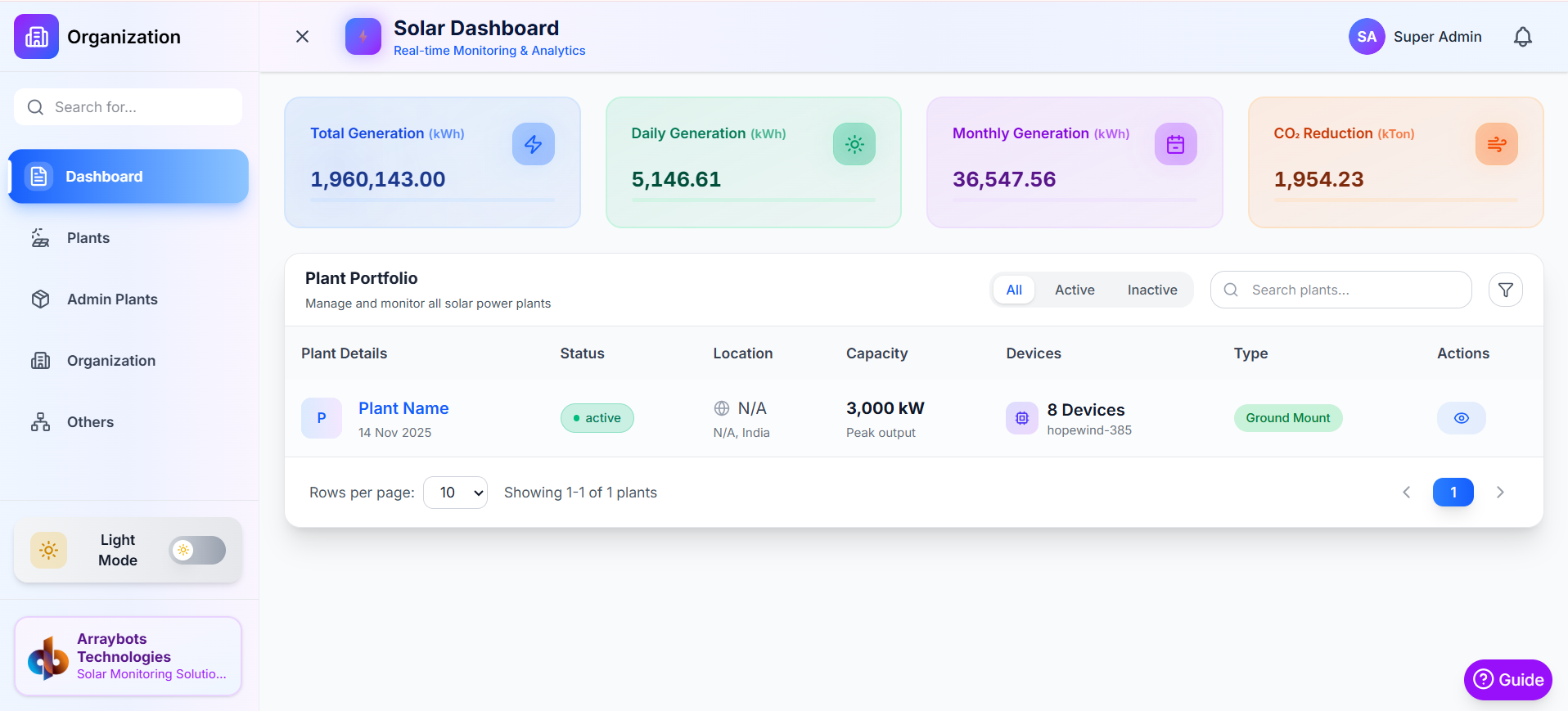 Everything you need to monitor, manage, and maximise your solar plant's performance — in one intelligent platform.