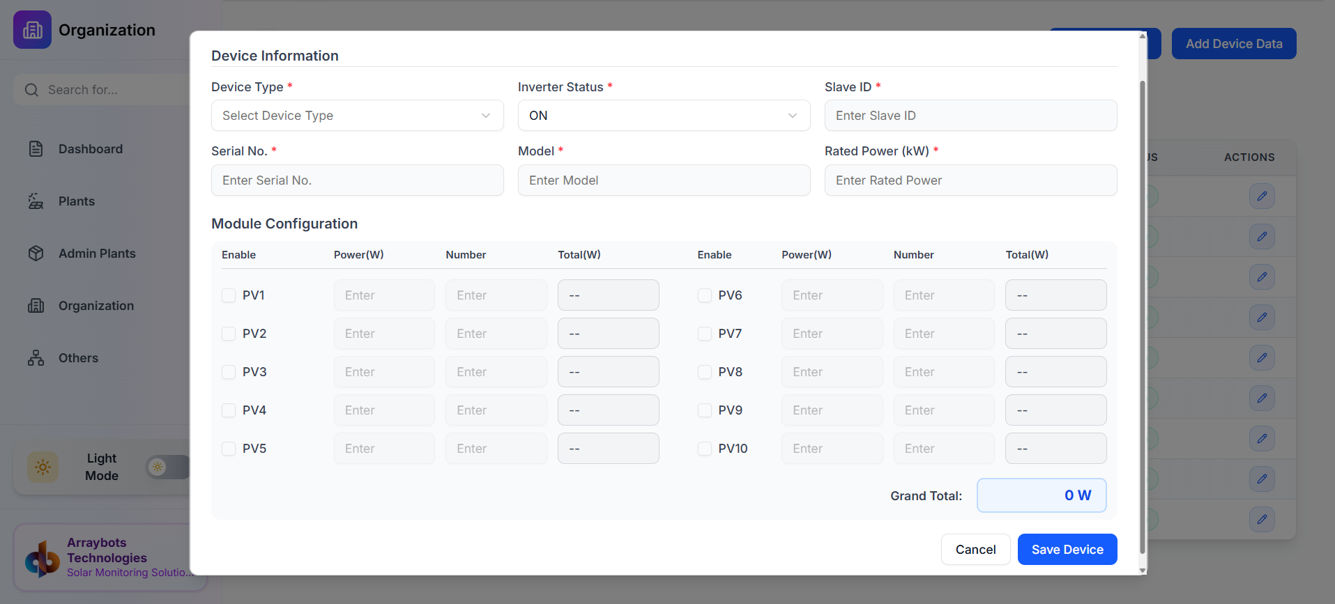 01Register, track, and manage all your inverters and meters in one place. View per-device health status, voltage, current, and fault codes at a glance.